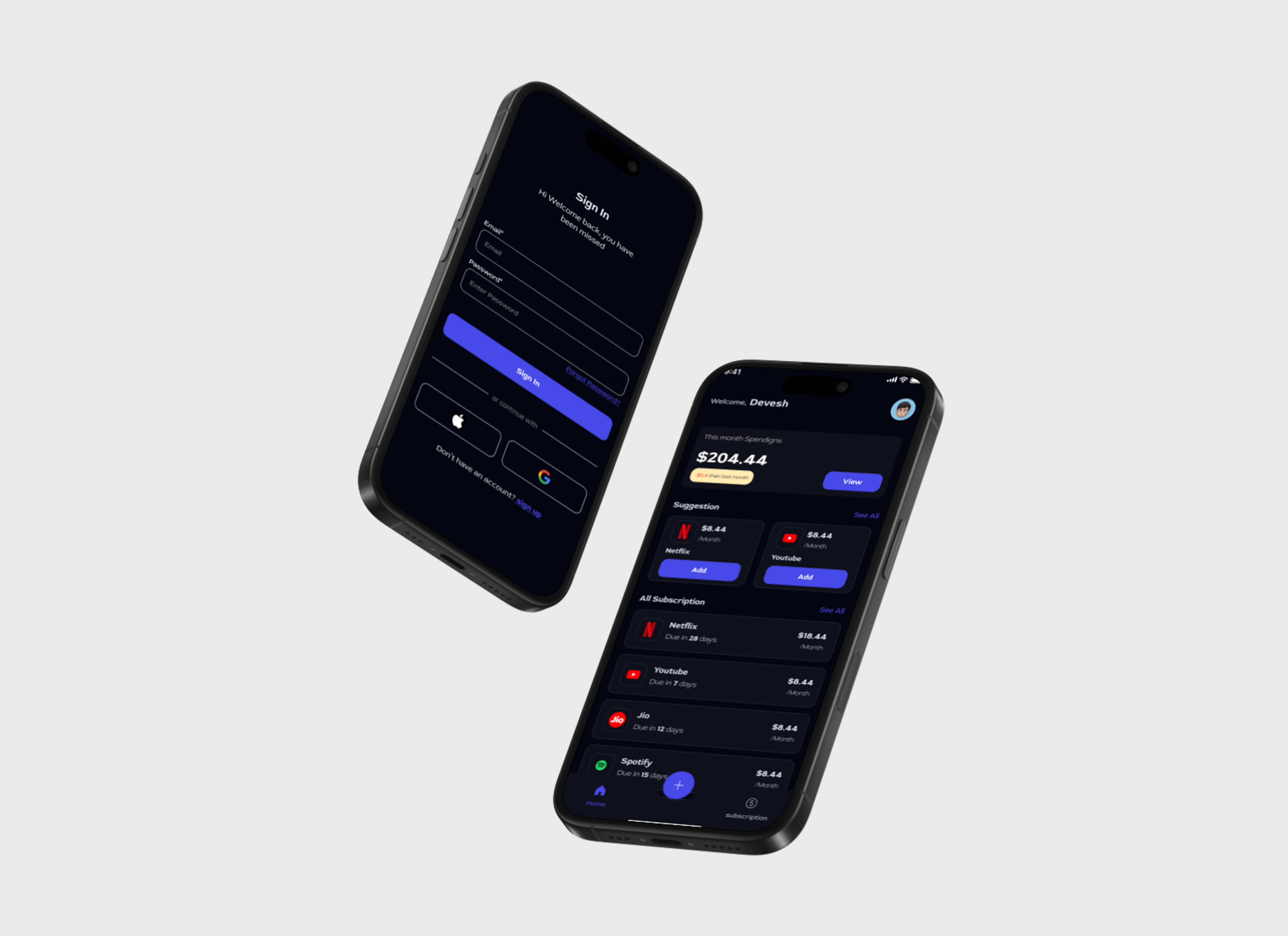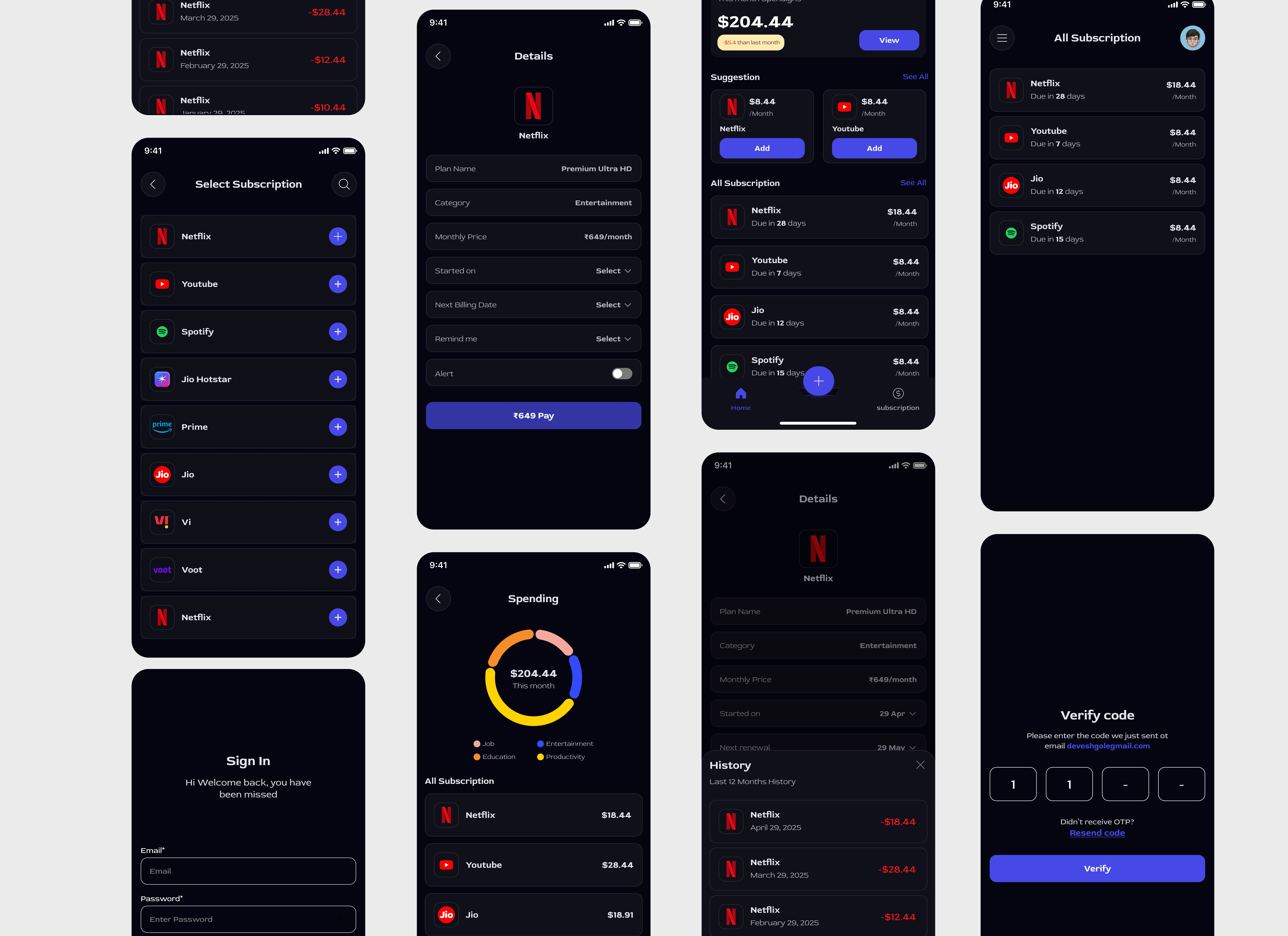 A smart and intuitive app to track, organize, and manage all your subscriptions in one place. Designed with a clean interface, simple navigation, and detailed screens for bills, reminders, and usage insights.
